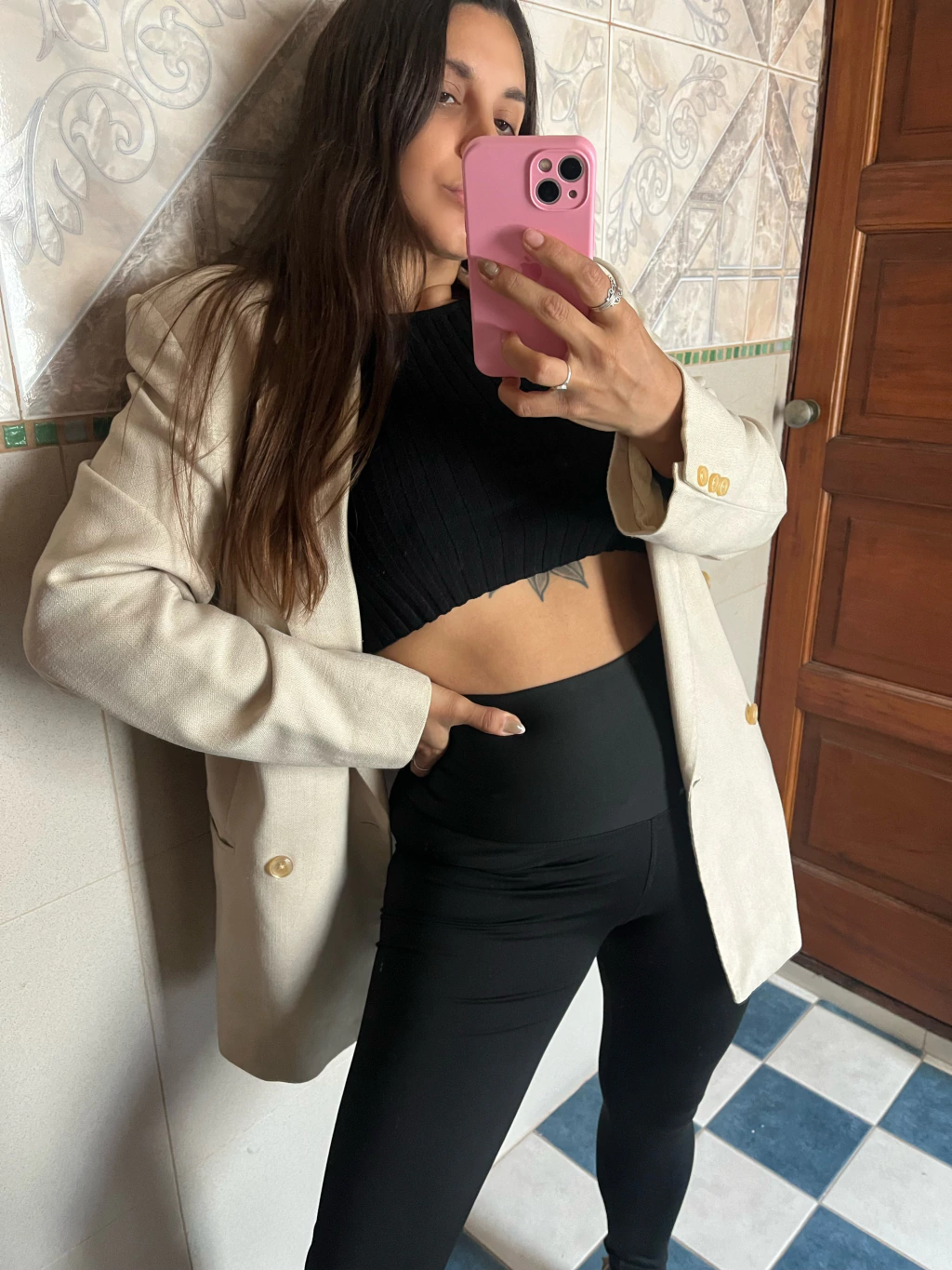 Lycra premium gruesa, tiro súper alto con cintura doble , elastizada con el rebote opuesto de la tela , no tiene elásticos que te incomoden ni te marquen .